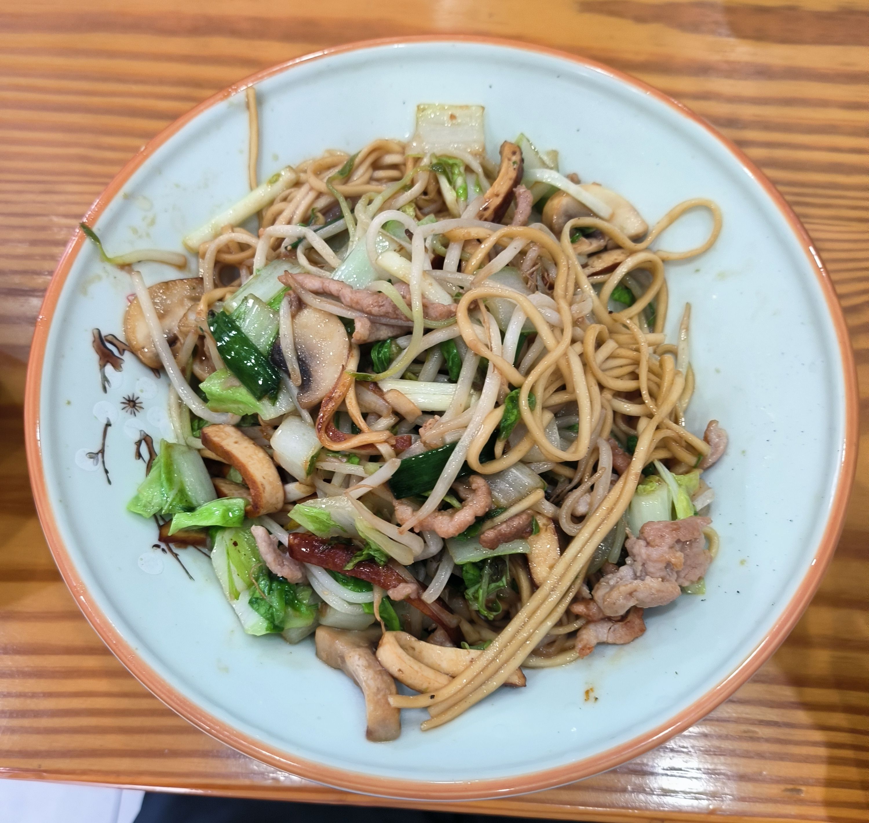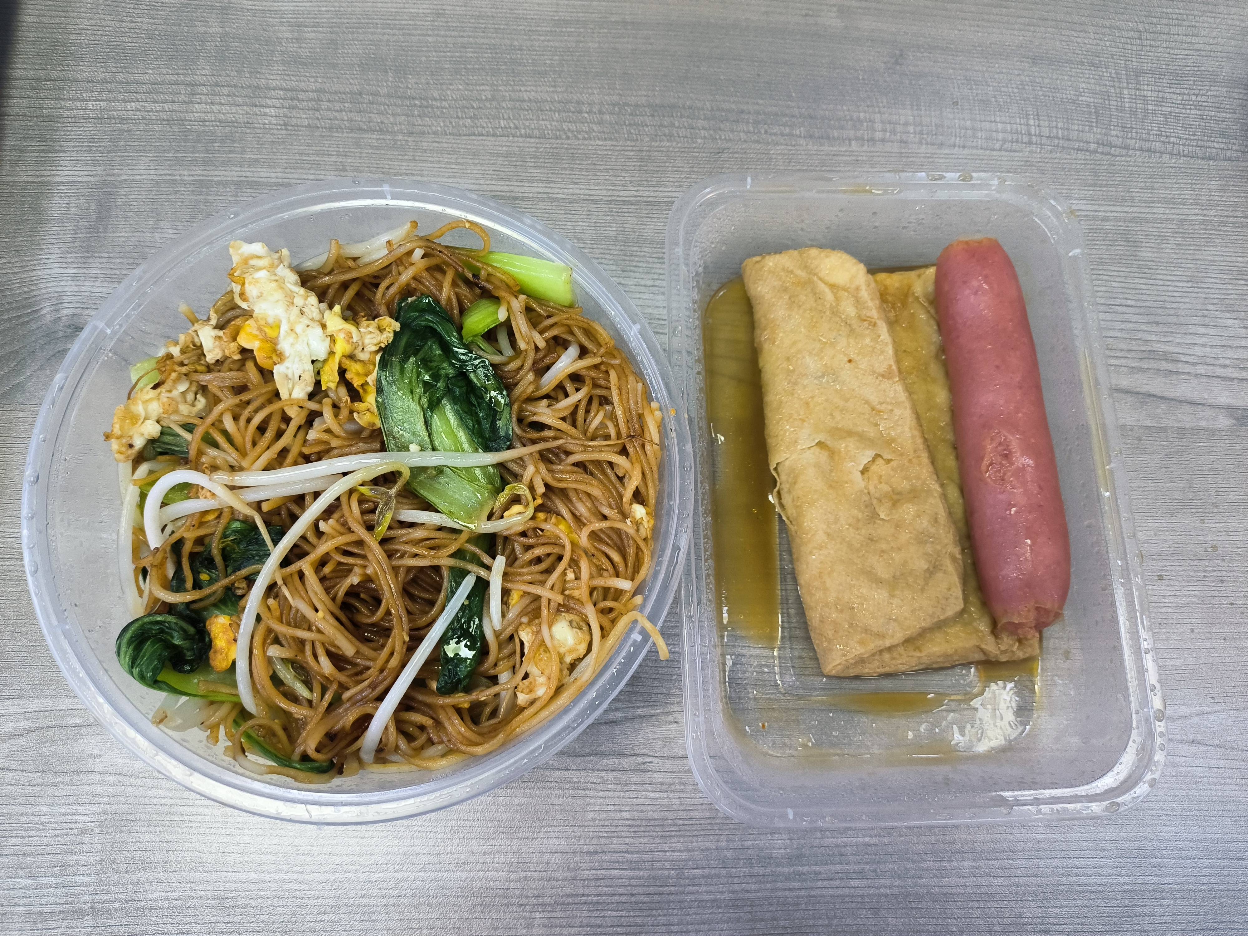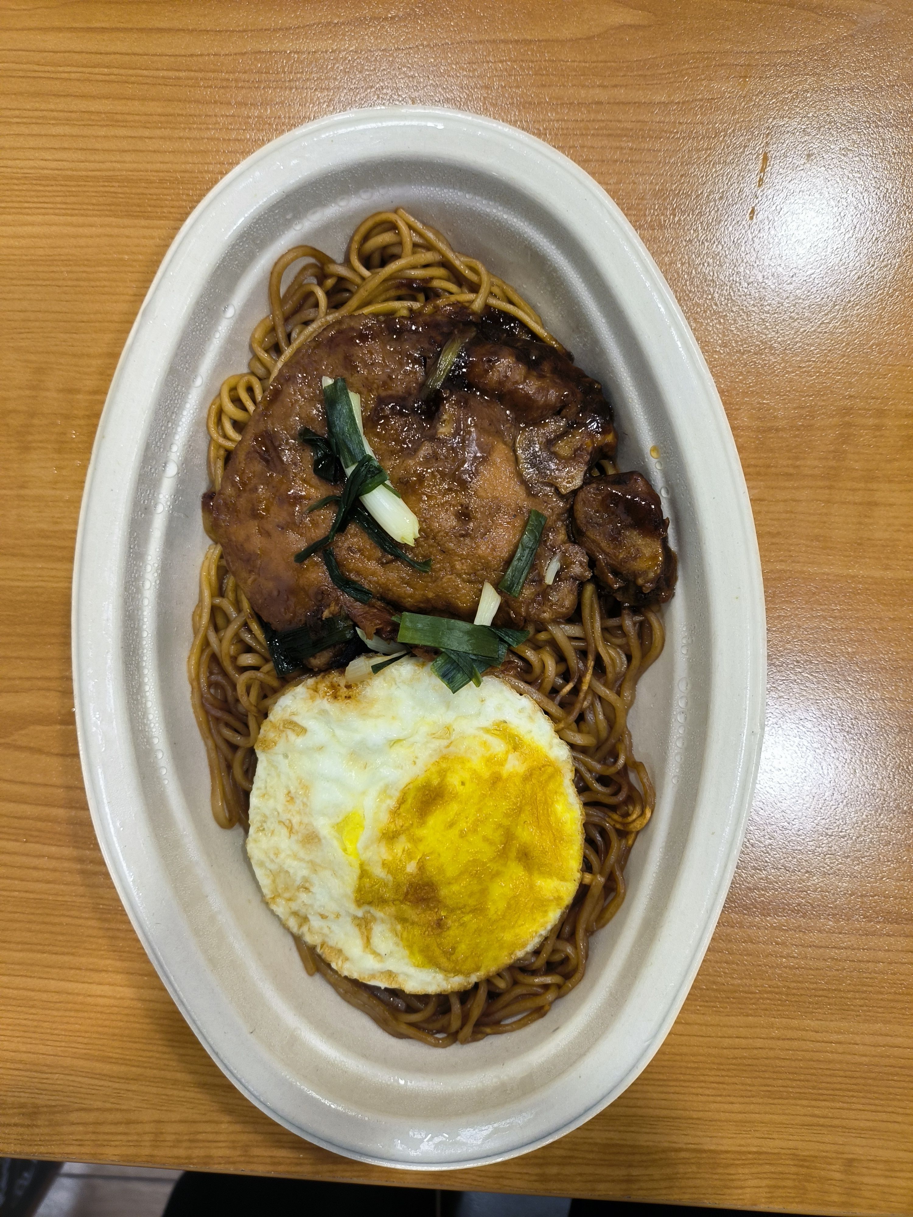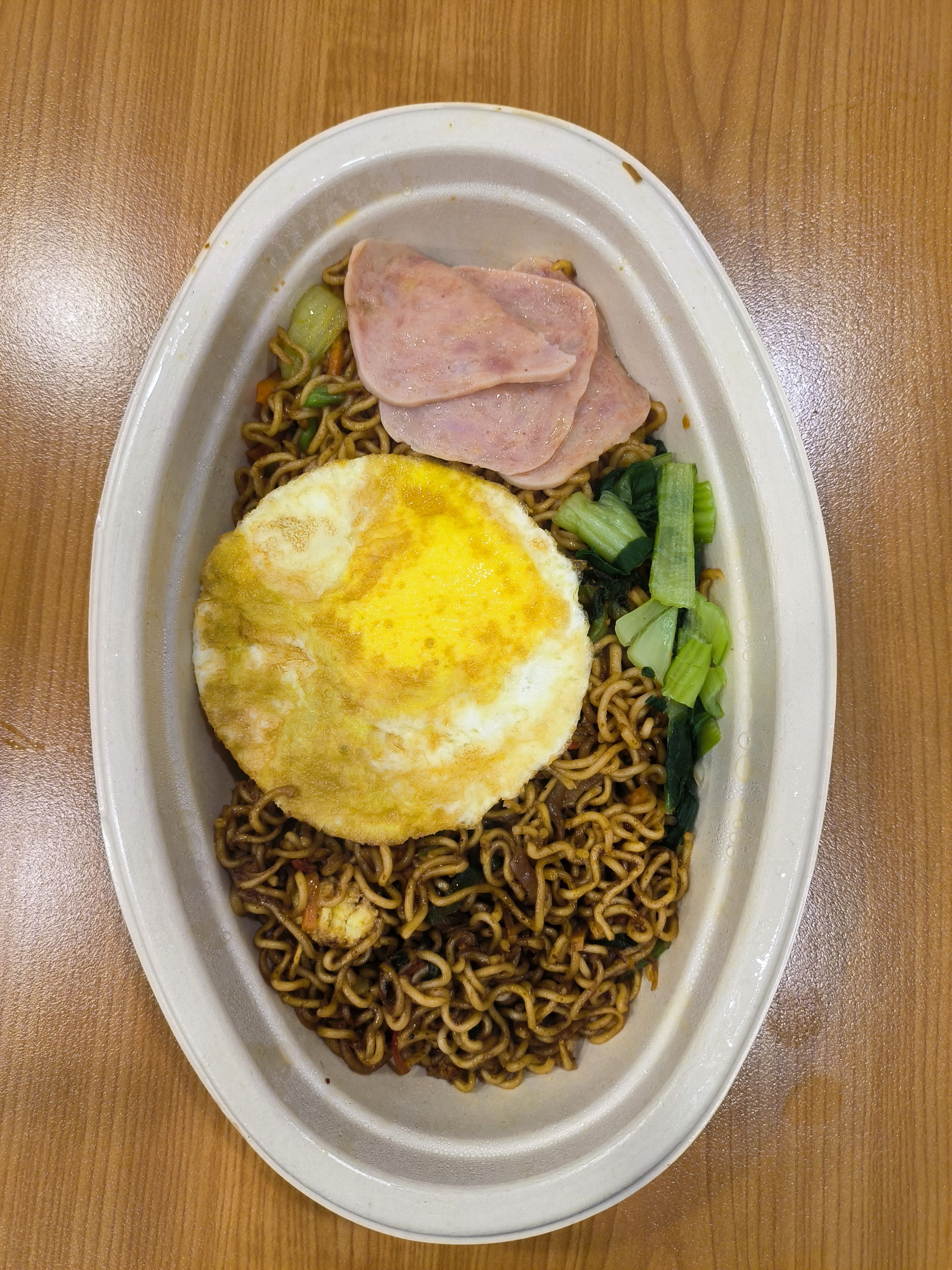 港式午餐肉煎蛋炒面。确实很港式,像是我在 CityU 吃的午餐的低配版(炒饭+两大块午餐肉+两个煎蛋+蔬菜,HK $23),当然价格也低配了。