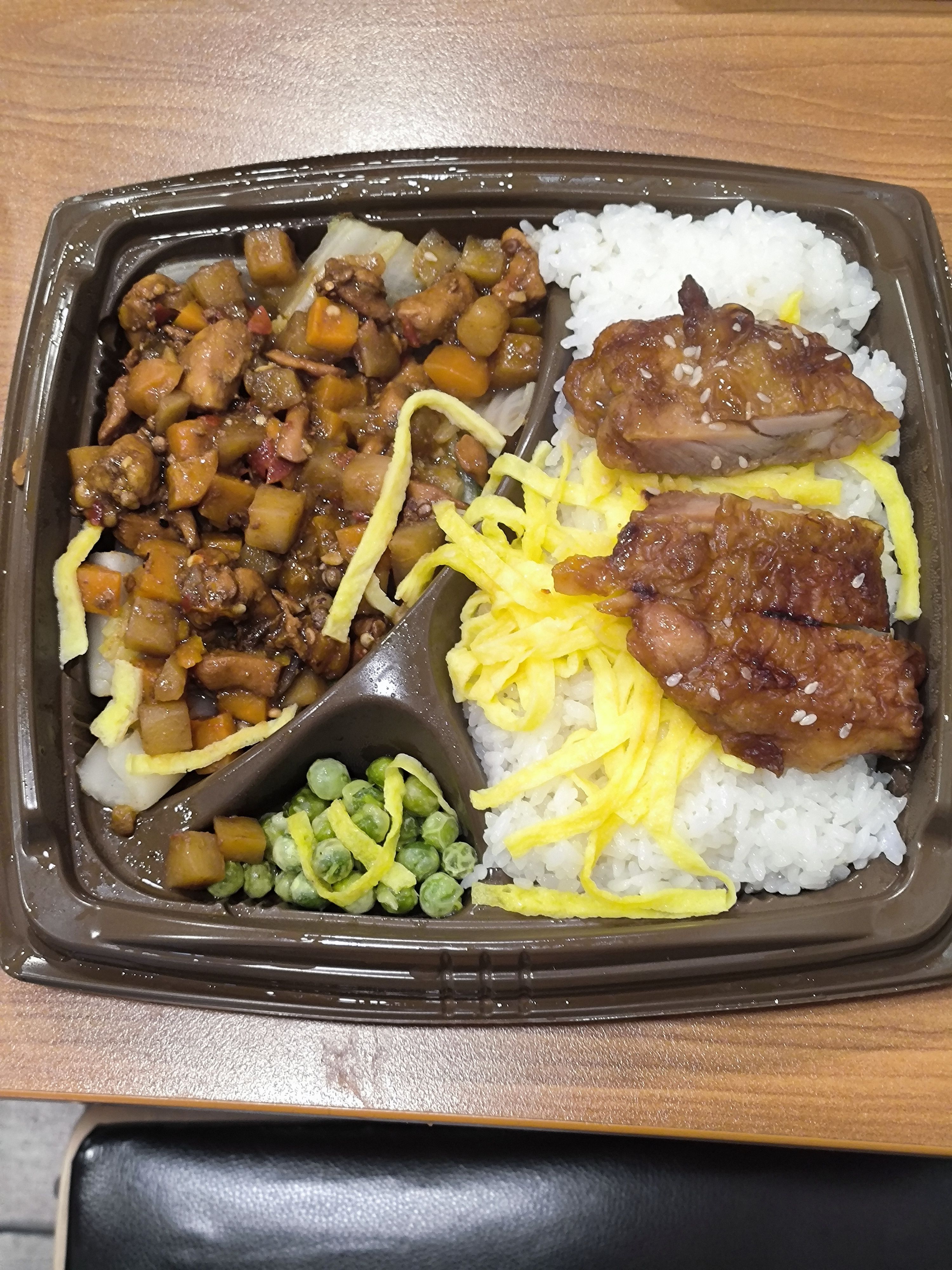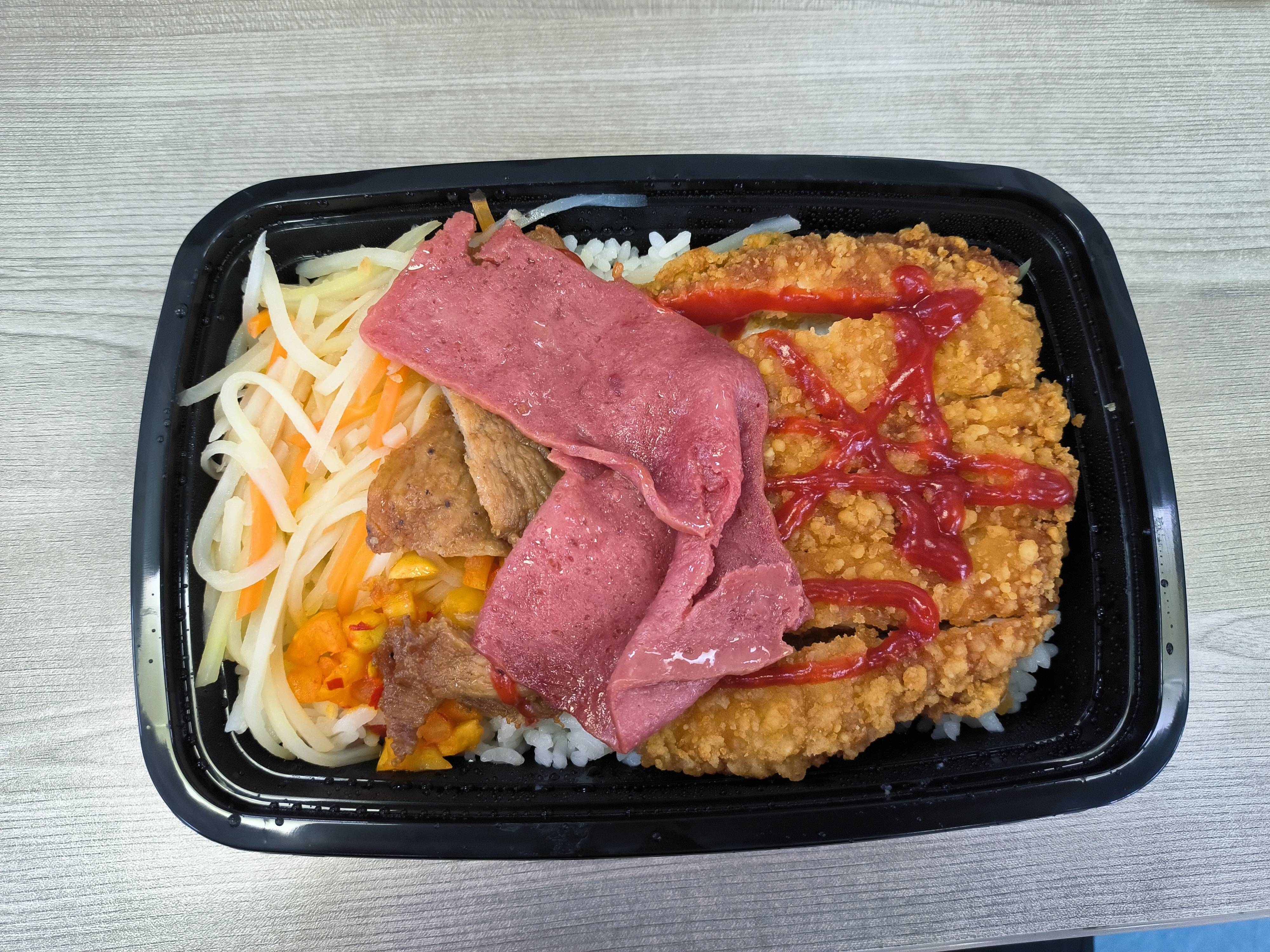 虽然是双拼饭,但是有三种菜,未免有些奇怪。灵机一动的我作出以下推测: