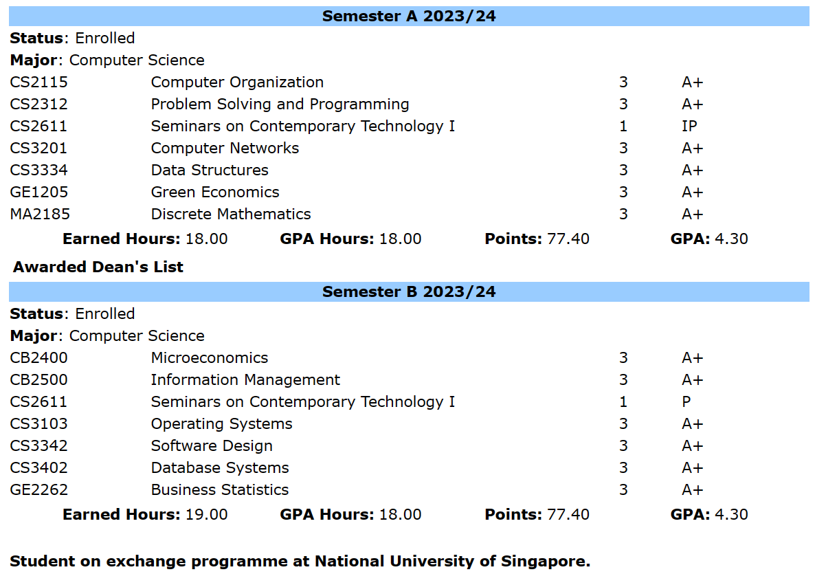 你怎么知道我大二两个学期全满绩?此事在 Dean’s List 中亦有记载。