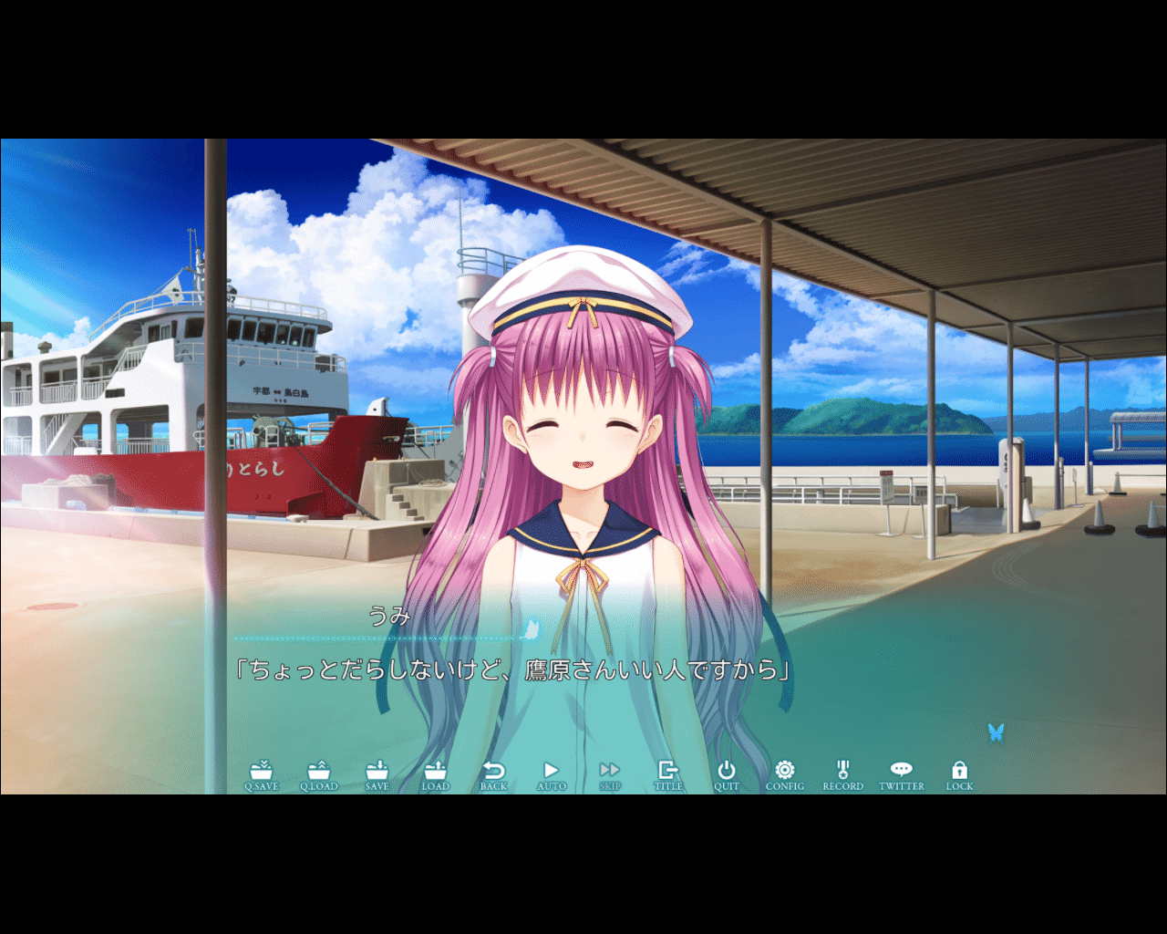 说起来,本作中主角几乎从不离岛(鸥线虽去了其他小岛,但属特例)。(※补充:一周目时未察觉,在白羽线中若达成条件,两人会乘船前往冈山吃可丽饼约会)。现实中从直岛到冈山县宇野乘高速船仅需15分钟/300日元(此为2021年现实圣地情况,Summer Pockets世界线是否相同则未知)。