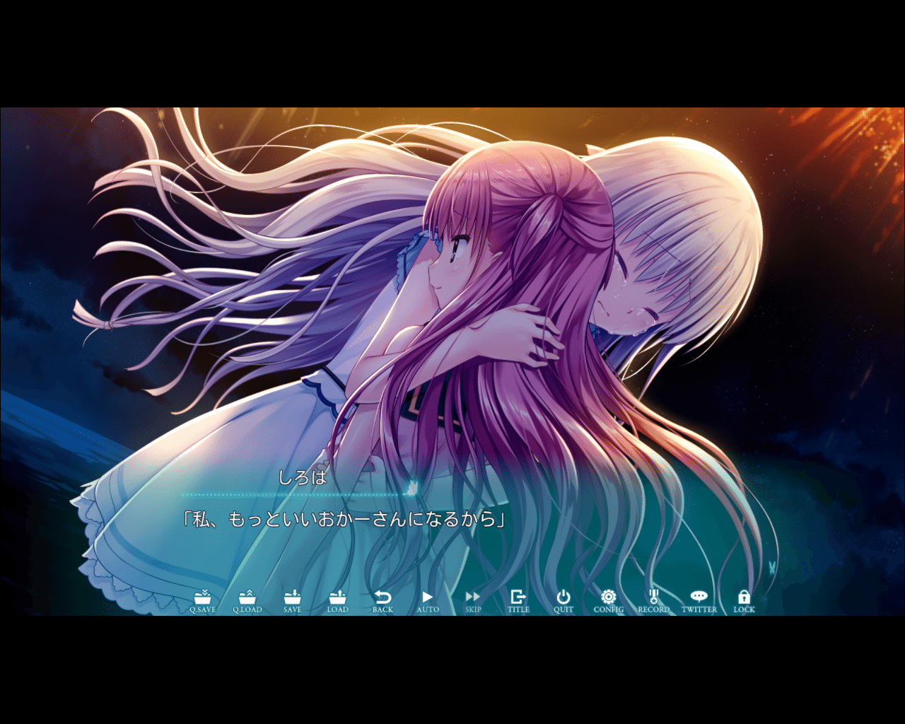 不,其实我真想把这一幕设为缩略图。说这是本路线中最喜欢的场景也不为过。但毕竟剧透过多,还是作罢。白羽最初略带紧张的神情逐渐变得柔和、充满慈爱的过程,实在珍贵无比……
