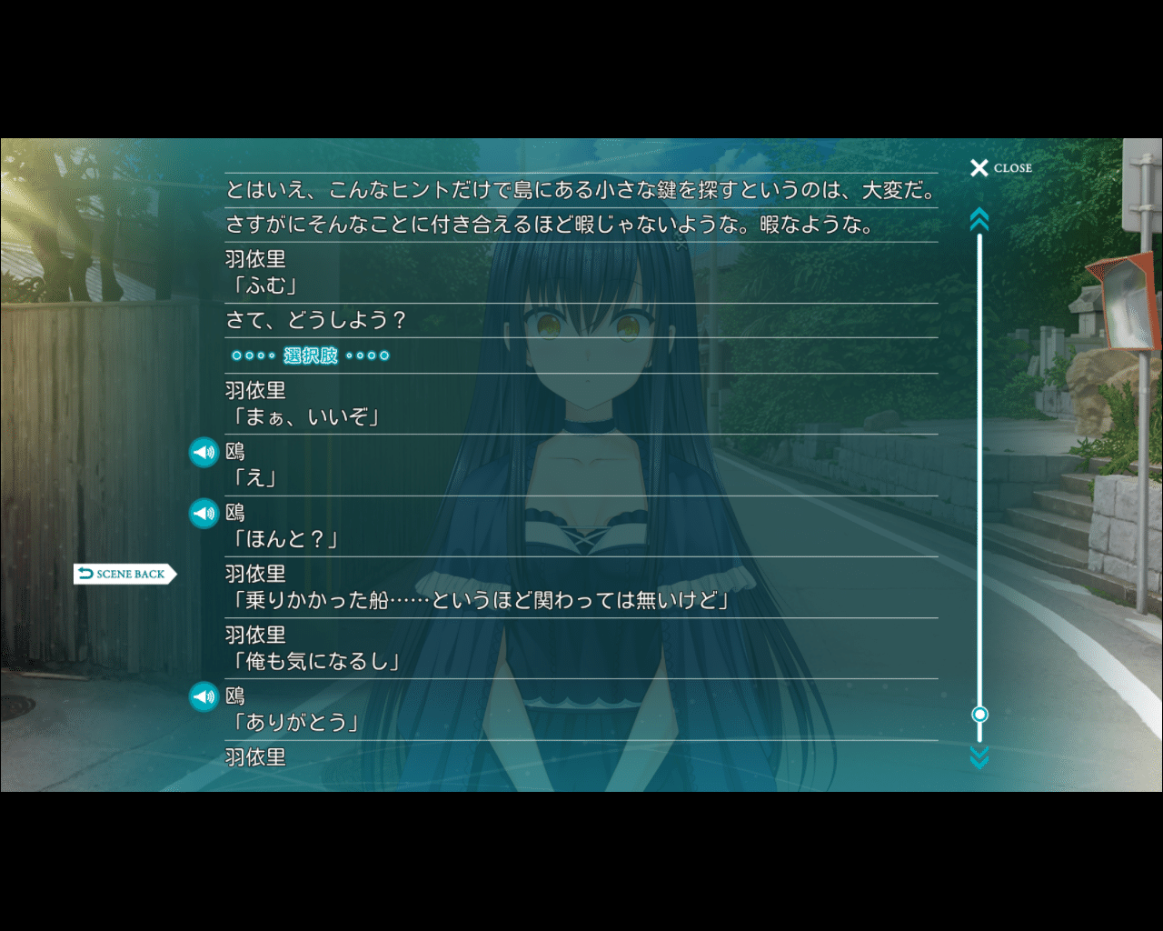 选择正确选项后,爬树时羽依里会回想起「以前好像也受人所托爬过树」。关于这点,我也曾想过「莫非十年前和鸥冒险时也爬过树?然后像BAD END那样坠落导致羽依里失去了关于鸥的记忆…?」。