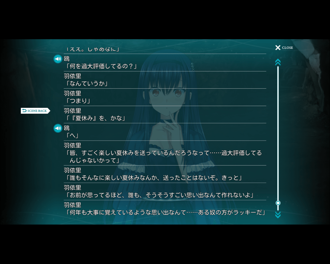 Summer Pockets无疑是款出色的游戏。对我这个「暑假」概念已消失数年的人而言,沉浸其中体验「对一去不返暑假的艳羡」成为一种快感。